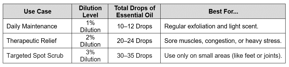 Dilution Guide for 1 Cup (8 oz) of Sea Salt Scrub